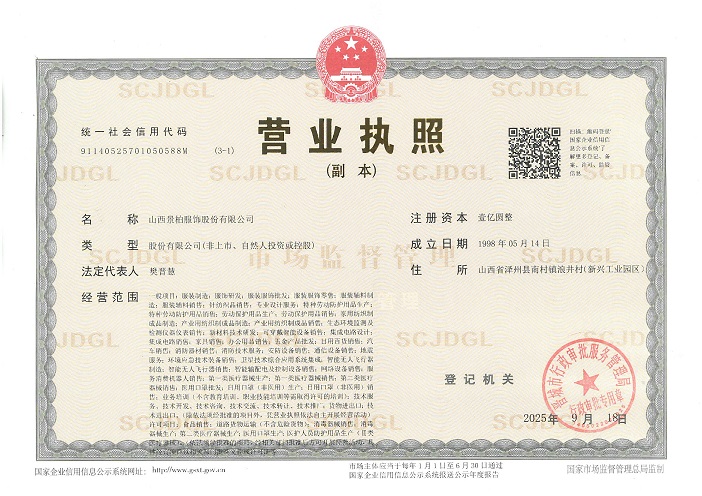 Copyright@2014 山西景柏服饰股份有限公司 备案号:晋公网安备14050002001831 地址:山西省晋城市泽州县