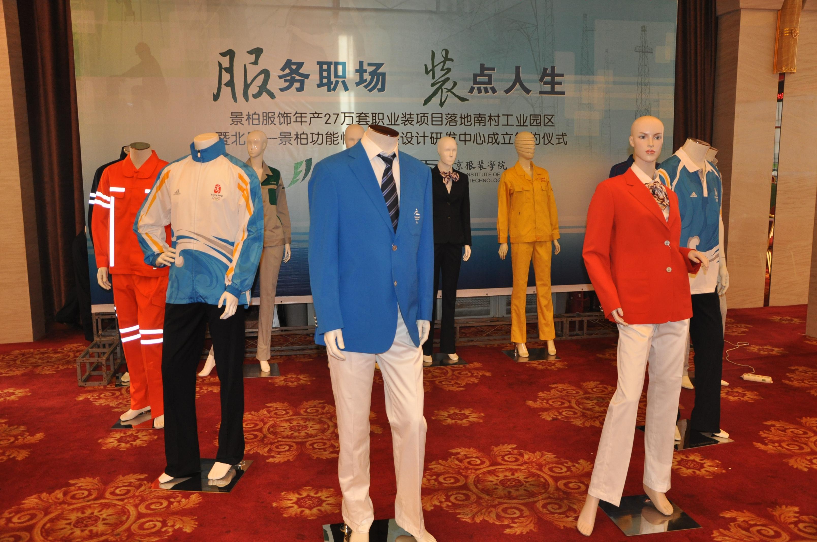 山西景柏服饰有限公司与北京服装学院合作成立的“北服—景柏功能性职业装研发中心”。在这个机制下,功能性职业装中心将借鉴先进国家职业装设计、工艺以及经营理念等方面的经验,由北京服装学院材料科学与工程学院、服装艺术与设计学院的教授、专家为主的国内知名职业装设计师和新材料、面料染整加工、性能检测等方面的专家,通过功能性职业装研发中心这个平台,紧密结合山西景柏服饰有限公司的生产需要,从功能性职业装的款式设计、人体工学设计、面料设计、面料加工、功能性检测、服装安全性检测等方面与山西景柏服饰有限公司进行广泛合作,借助该企业的生产加工优势,集聚优化创新资源,力争为我国高品质、高附加值功能性职业装的研究开发奠定基础。